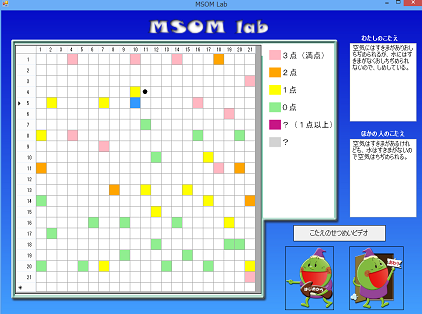 - MSOMの開発においては,単語を自己組織化マップに配置しましたが,2009年頃から書かれた文章のほうを自己組織化マップに配置することにより,文章の類似性を示すことができるのではないかと考えました。また,TIMSSやPISAにおいては,児童・生徒の科学的な記述についての問題点が指摘されていました。そこで,自由記述したものを自己組織化マップを用いて評価できないかと考えました。そして,2010年度から,VB.NETを用いて,デスクトップ上で自由記述を評価するシステムの開発を行いました。2010.8(日本理科教育学会第60回全国大会)にデスクトップ上で,TIMSSの自由記述問題の回答を評価できる試作版を公表しました。